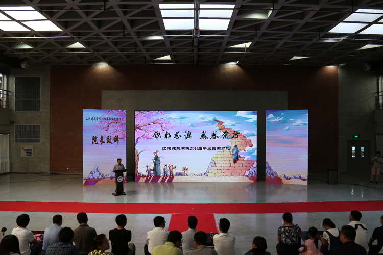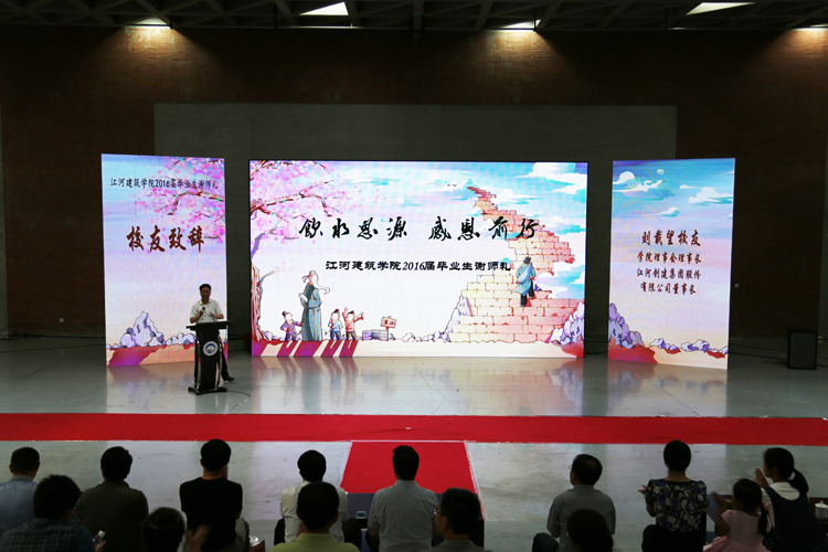 我院“饮水思源,感恩前行”2016届本科毕业生谢师礼于6月19日下午15:00在江河建筑楼B座梁思成纪念堂内举行。江河创建集团董事长刘载望校友,东北大学大连校友会秘书长王德虎校友,东北大学党委副书记杨明,外请教师代表夏永发、梁峰老师,学院党委书记安立鸿、院长修春亮、副院长刘抚英、副书记兼副院长徐长文、院长助理曲艺及全院教职工出席了谢师礼,出席活动的还有学院2016届全体本科毕业生及300余名低年级本科生。谢师礼由徐长文主持。