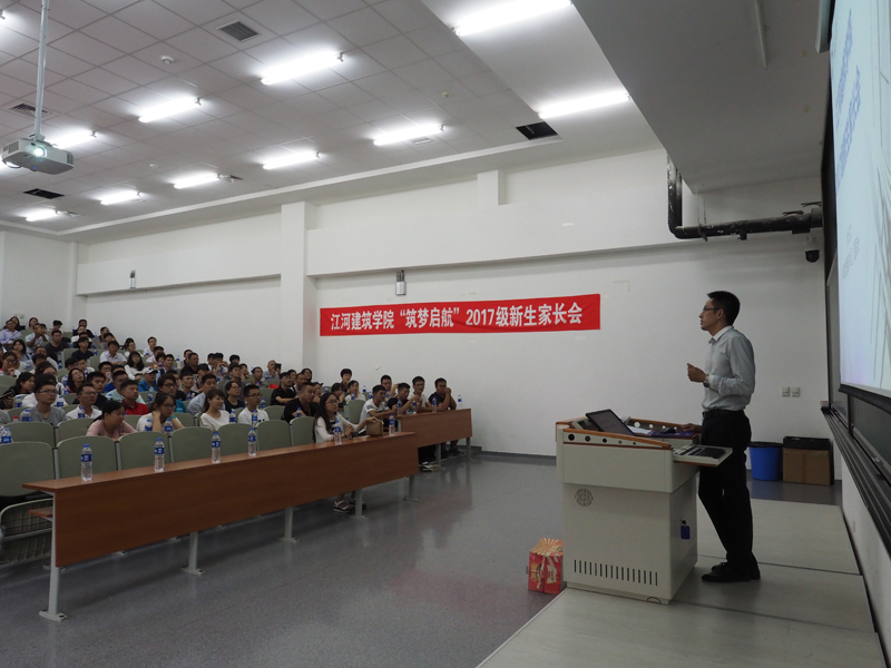 下午1:00,“筑梦启航”新生家长会在建筑学馆A102举行,学院党委书记安立鸿、院长修春亮、党委副书记兼副院长徐长文及各班班导师、新生辅导员出席了家长会。修春亮代表全院教职工对2017级新生与家长的到来表示欢迎,并对学生未来五年的学习与习惯的养成提出了较高的要求和殷切的希望;徐长文针对学生综合能力的培养、专业能力的提升以及学院对学生学业发展方面的支持与资助政策等问题进行解读,促进学院与家长竭力共同为学生的成长成才提供教育与支持。会后学生志愿者带领新生及家长参观学院的专业教室及在校生的优秀作业,让学生和家长进一步了解学生的学习环境,促进其对专业的认知。
