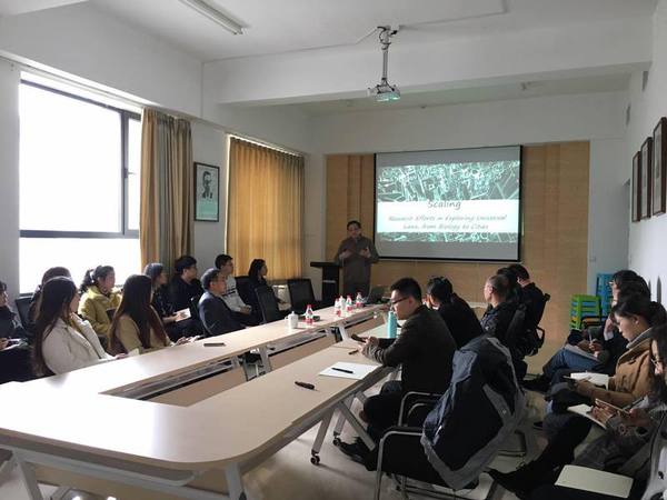 3月22日,应修春亮教授邀请,美国路易斯维尔大学宋伟教授在建筑学馆A407室为学院师生做主题为“Scaling: Research Efforts Exploring Universal Laws, from Biology to Cities”的学术报告。