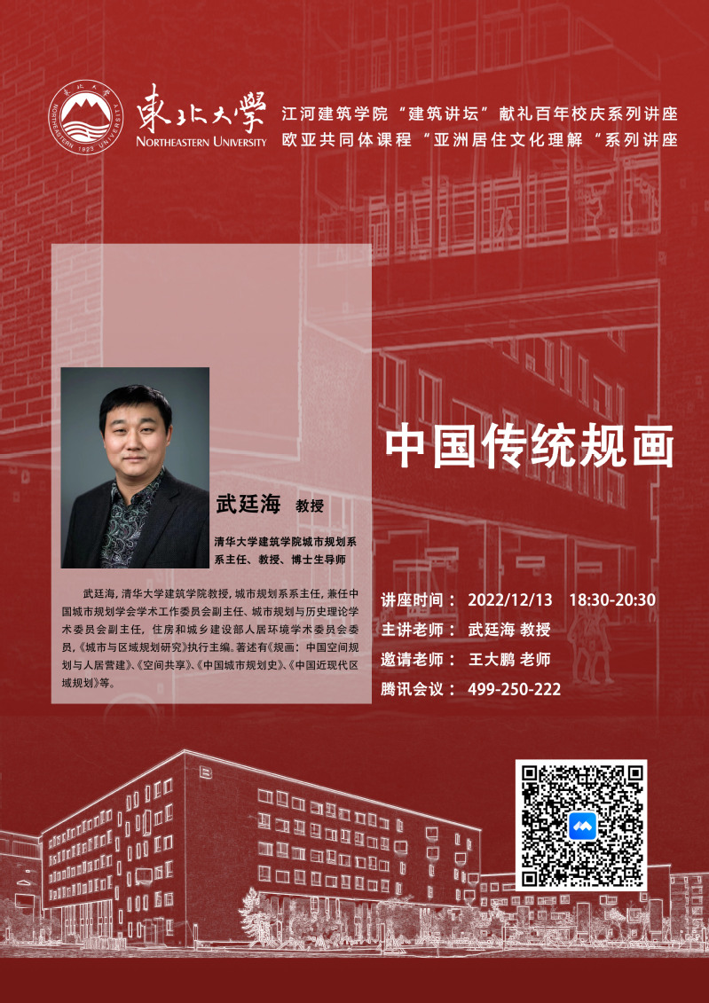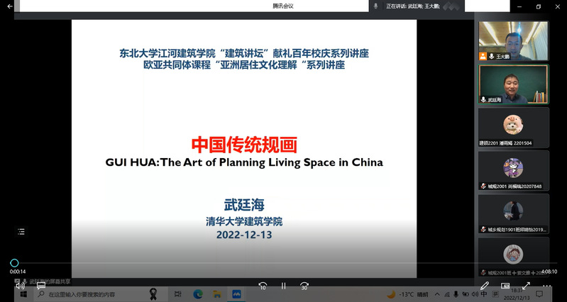 12月13日,应城乡规划系王大鹏老师邀请,清华大学建筑学院城市规划系主任武廷海教授做客BETWAY网页版在线登录“建筑讲坛”(暨献礼百年校庆系列讲座),做题为《中国传统规画》的学术讲座,学院师生100余人参加线上交流。