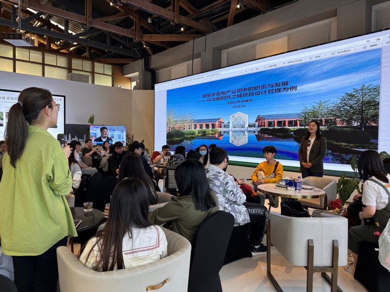 随后,应学院副教授顾威老师邀请,华润置地沈阳公司设计部负责人陈曦雪从自身就业经历和项目始终出发,为同学们带来题为“建筑学在地产公司中的职责与发展——以沈阳时代之城项目设计管理为例”的讲座。讲座上同学们针对方案设计、项目管理与就业前景等问题与老师积极互动,现场活动气氛热烈,同学们受益匪浅。