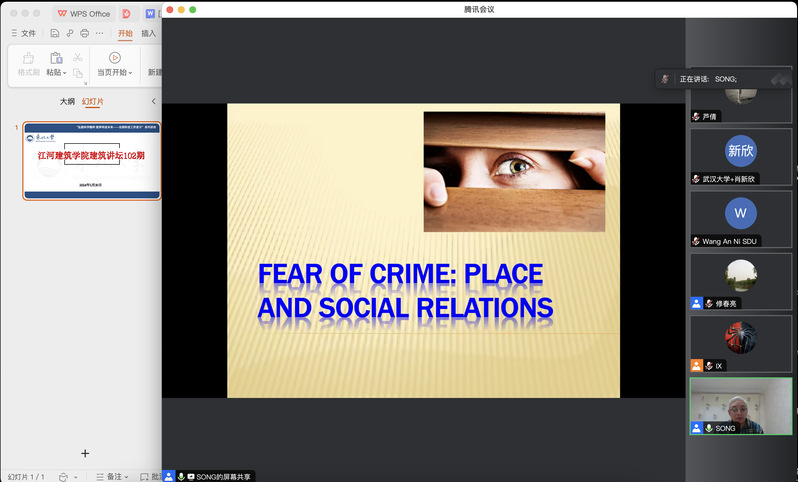 此次讲座不仅吸引了学院师生的广泛关注,也吸引了众多对城市规划和社会心理学感兴趣的专家和学者。通过这场云端学术交流,我们得以跨越时空的限制,与国际顶尖的专家学者近距离接触,感受他们独特的学术魅力和深厚的学术底蕴。