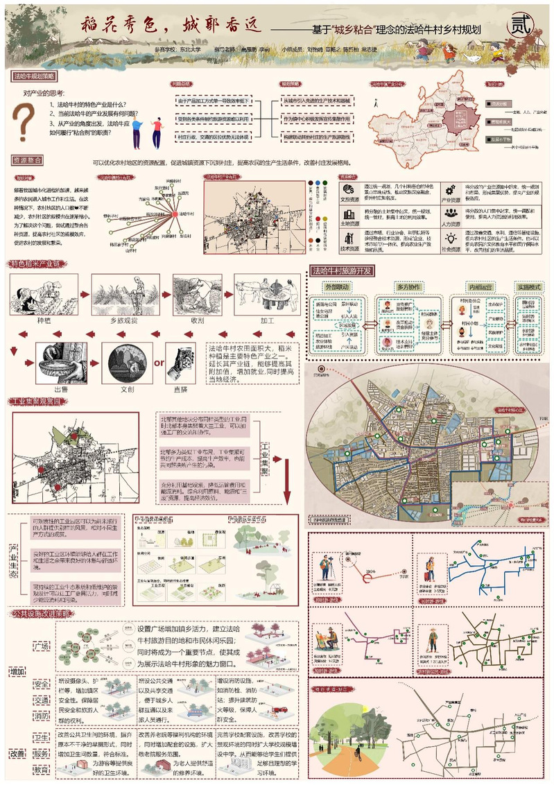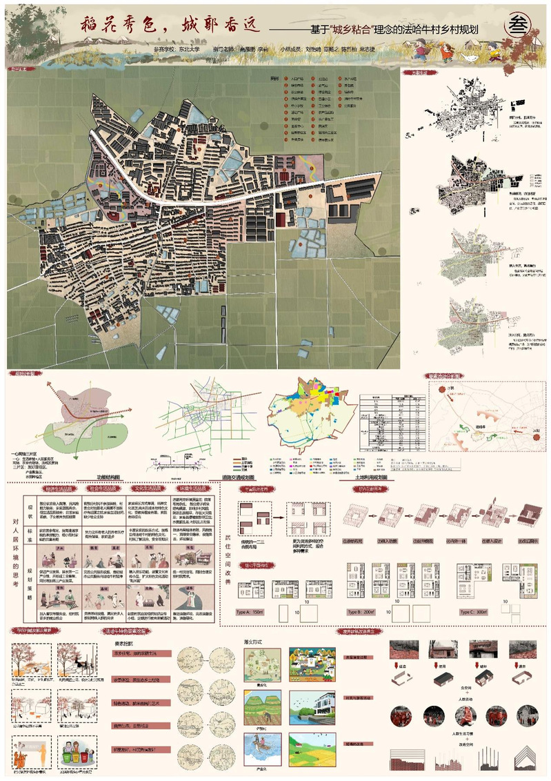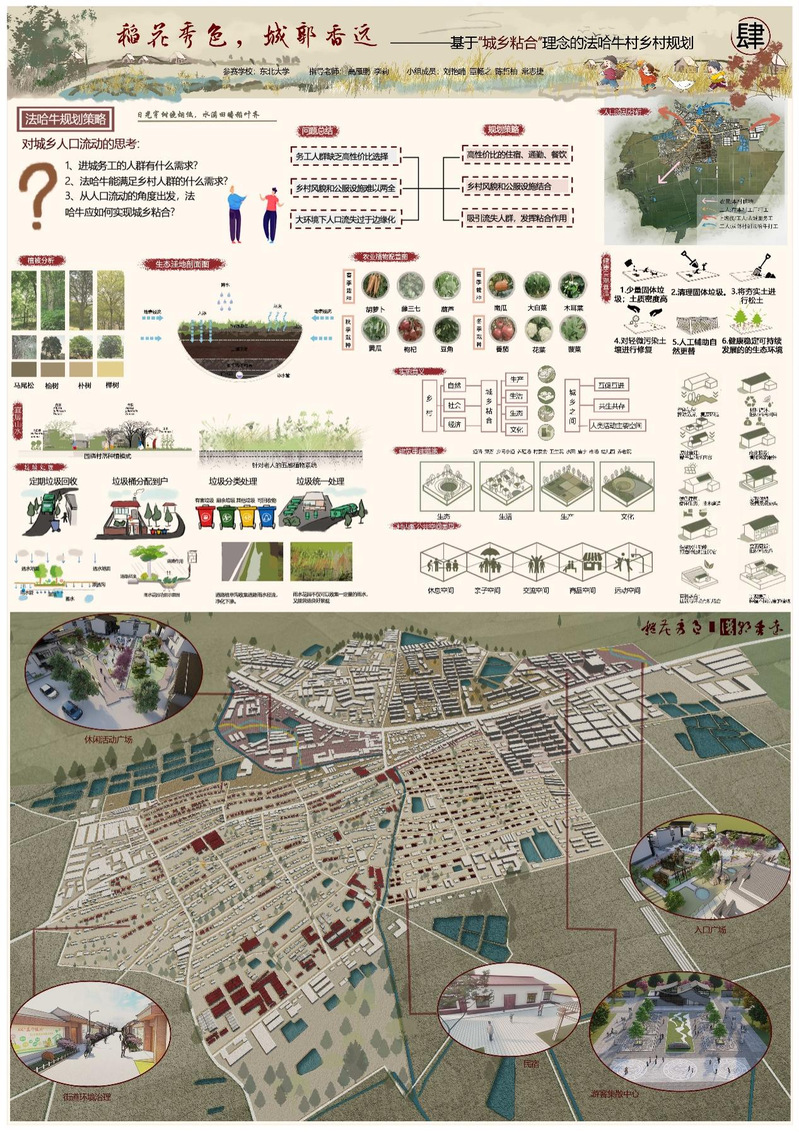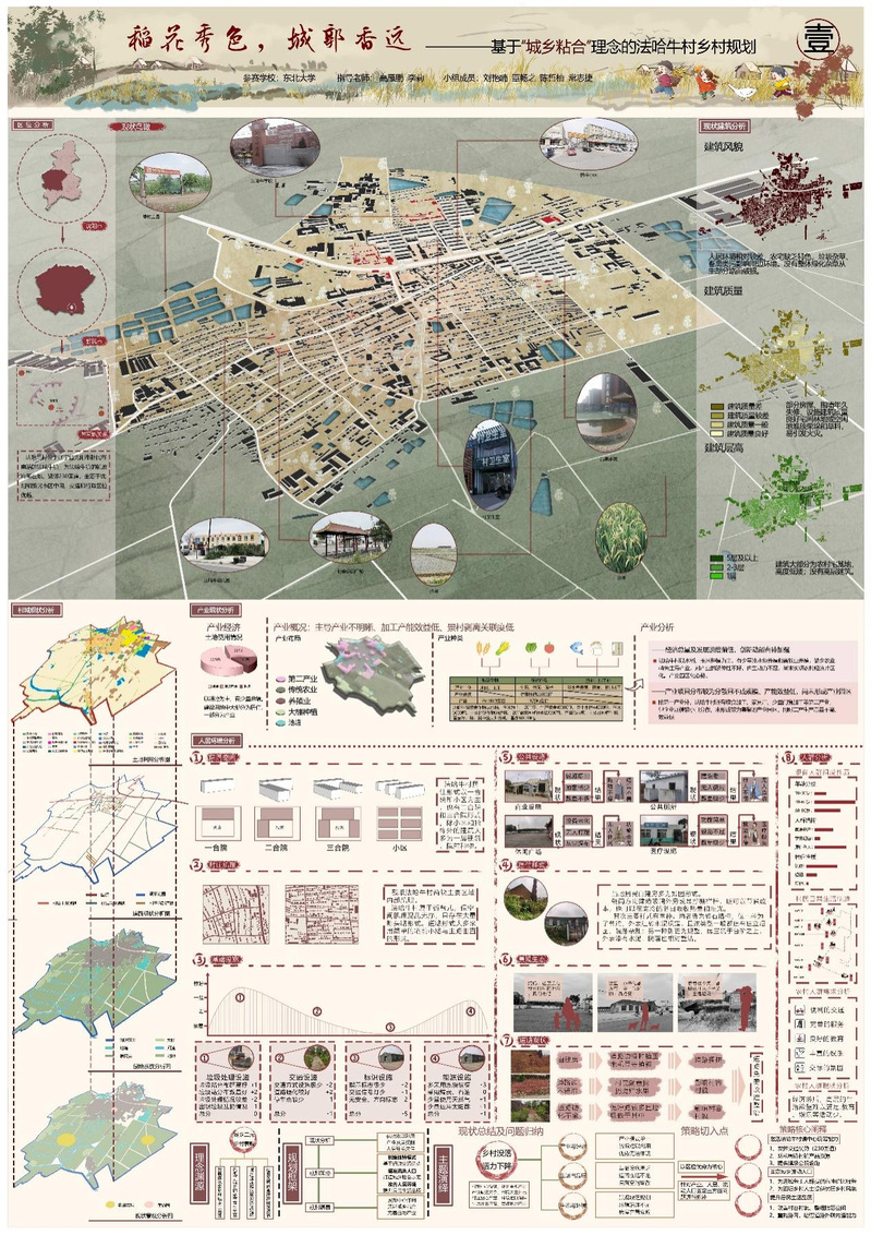 作品名称:稻花秀色,城郭香远——基于“城乡粘合”理念的法哈牛村乡村规划