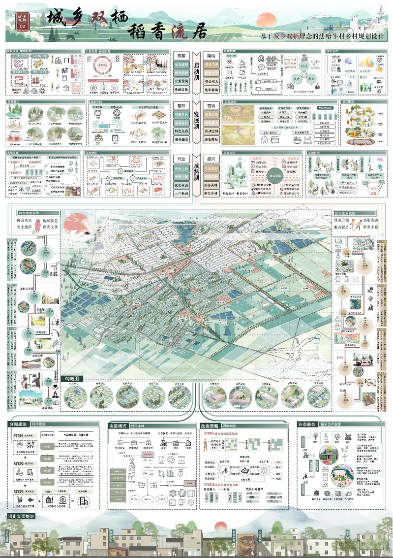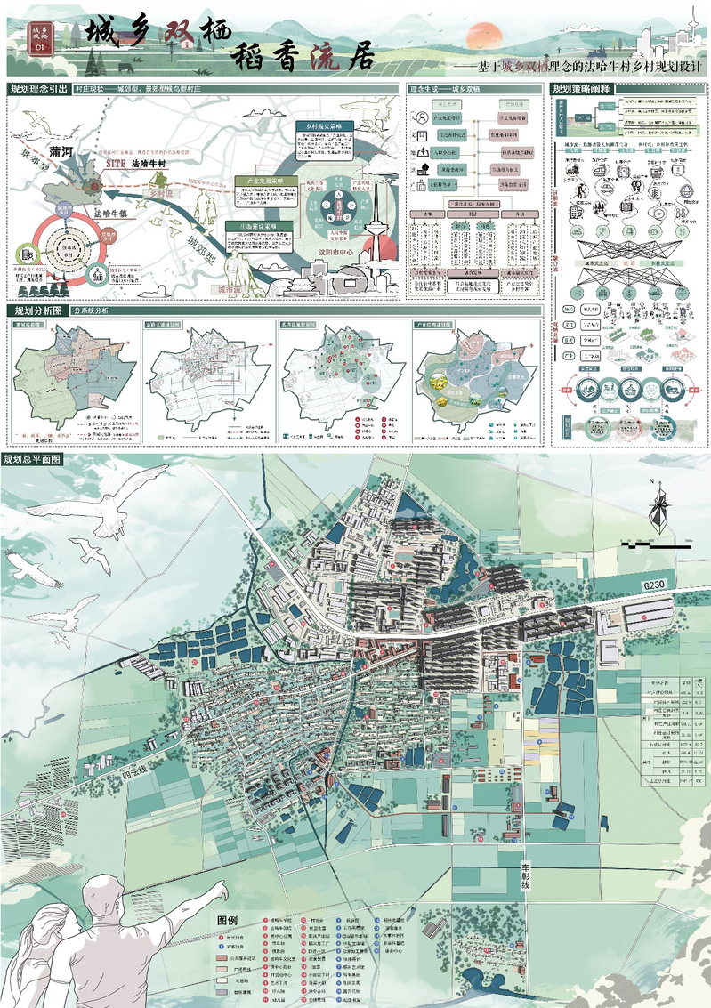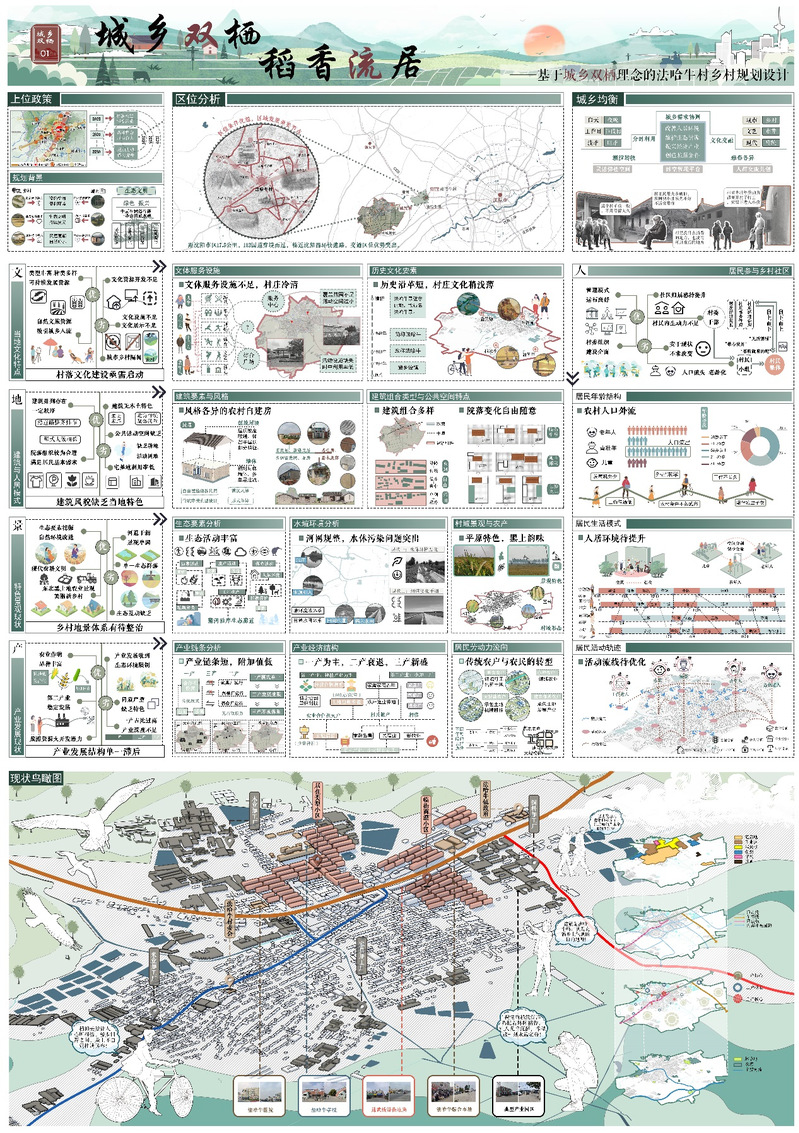 作品名称:城乡双栖,稻香流居——基于城乡双栖理念的法哈牛村乡村规划设计