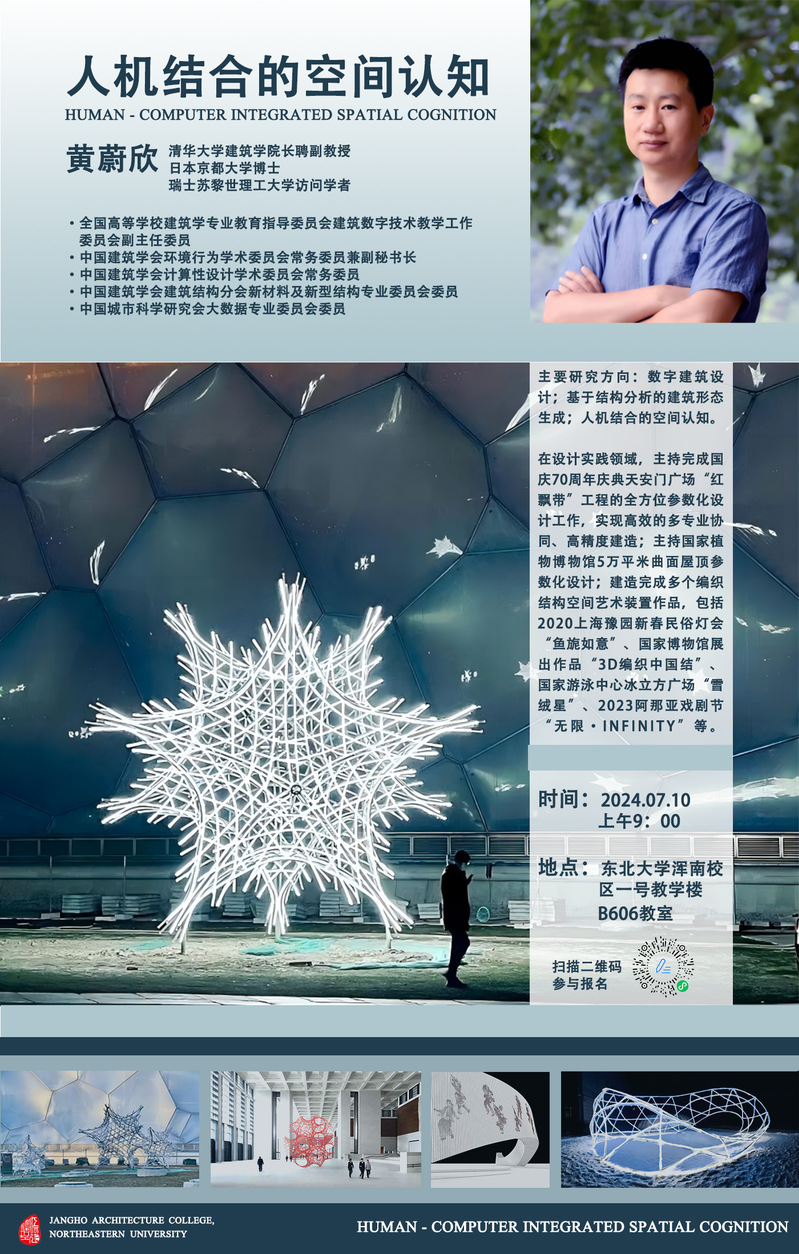 主讲人简介:黄蔚欣是清华大学建筑学院长聘副教授、日本京都大学博士、瑞士苏黎世理工大学(ETH)访问学者。学术兼职:全国高等学校建筑学专业教育指导委员会建筑数字技术教学工作委员会副主任委员、中国建筑学会环境行为学术委员会常务委员兼副秘书长、中国建筑学会计算性设计学术委员会常务委员、中国建筑学会建筑结构分会新材料及新型结构专业委员会委员、中国城市科学研究会大数据专业委员会委员,曾任亚洲计算机辅助建筑设计学会(CAADRIA)委员。