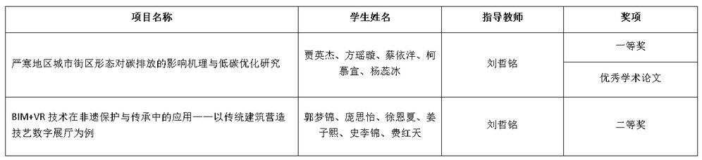 近日,第十二届辽宁省大学生创新年会圆满落幕,我院师生“严寒地区城市街区形态对碳排放的影响机理与低碳优化研究”和“BIM+VR技术在非遗保护与传承中的应用—以传统建筑营造技艺数字展厅为例”两个项目分获年会一等奖和二等奖,其中“严寒地区城市街区形态对碳排放的影响机理与低碳优化研究”同时获得年会优秀学术论文奖,我院刘哲铭老师荣获优秀指导教师。