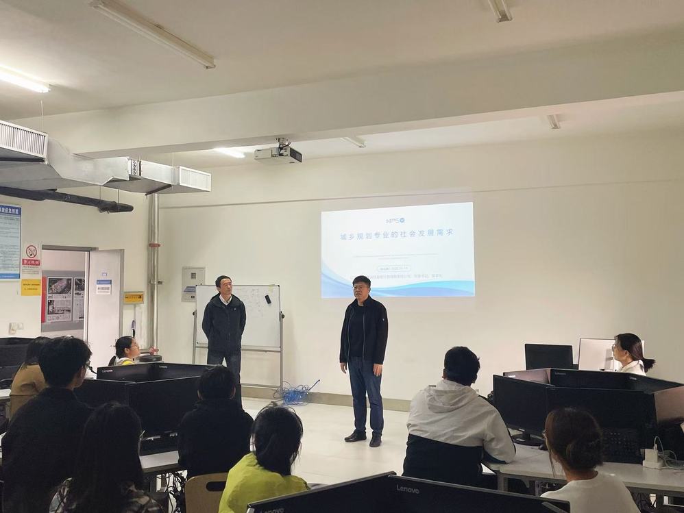 张立鹏从读书和工作两个阶段的亲身经历出发,用生动的案例帮助同学们充分了解城乡规划专业的方方面面。针对发展模式转型、AI时代等城市发展的新语境,张立鹏从就业方向、自身建设需要等角度,强调了规划思维的重要性,也向同学们介绍了规划专业的广阔就业前景。最后,围绕未来的社会发展需求,张立鹏从城市更新、乡村振兴、AI赋能、信息化等方面进行了深入解读报告结束后,同学们针对规划院未来的用人需求、出国深造的必要性等话题与张立鹏展开了进一步的交流。